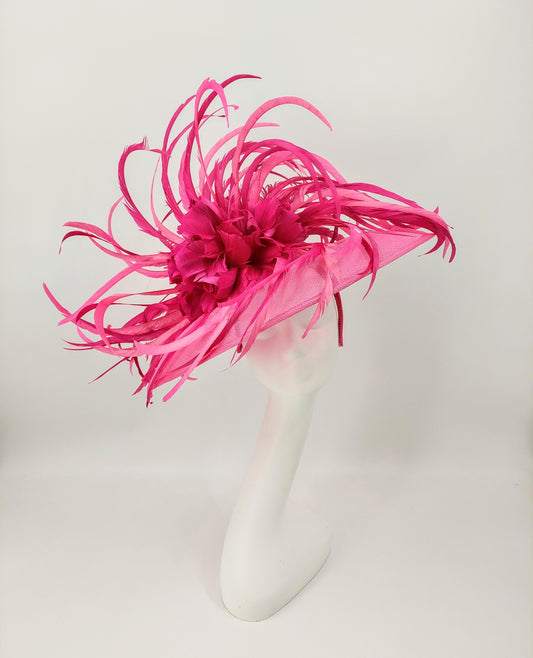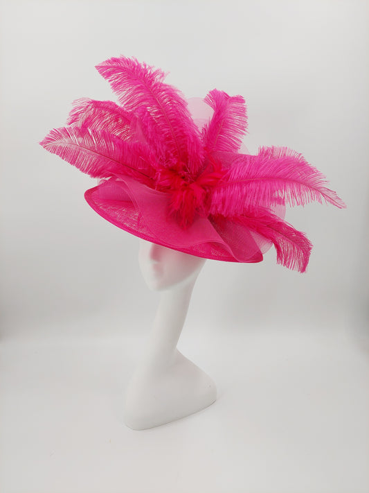 Bold Hot Pink & Black Checkerboard Buntal Hat | Waterfall Edge Design with Hand-Sculpted Sinamay Swirls – A Striking, Artfully Crafted Statement Piece