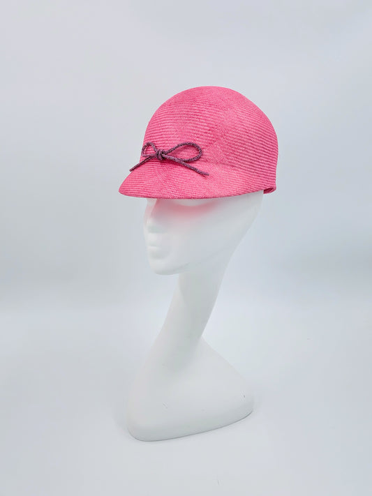Bold Hot Pink & Black Checkerboard Buntal Hat | Waterfall Edge Design with Hand-Sculpted Sinamay Swirls – A Striking, Artfully Crafted Statement Piece